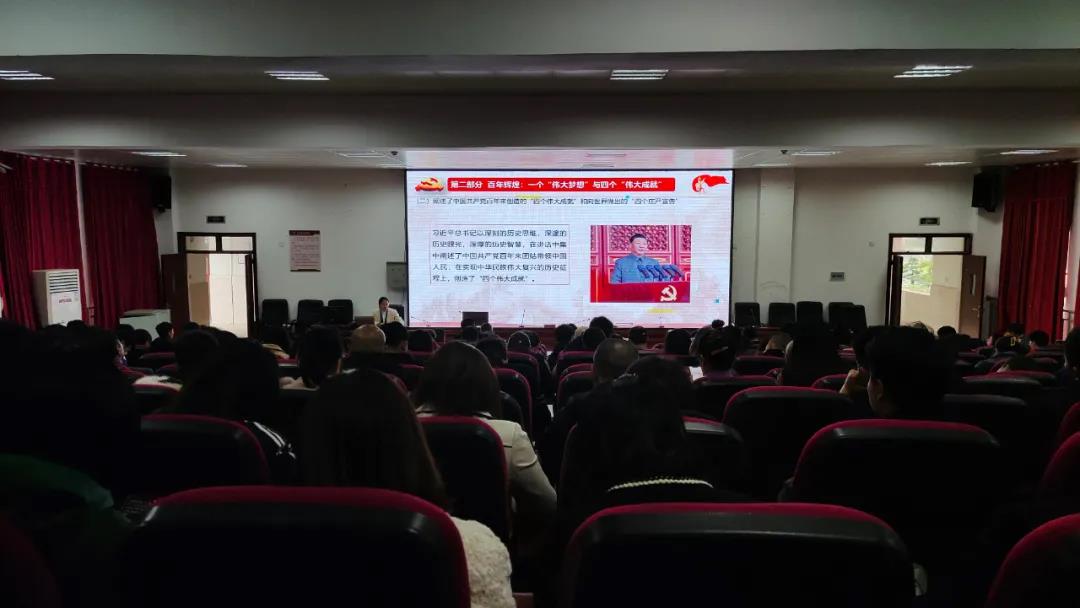 宣讲会从百年密码:“伟大目标”与“伟大精神”、百年辉煌:一个“伟大梦想”与四个“伟大成就”、百年起点:响应伟大号召开创美好未来,三个部分作详细讲解。
